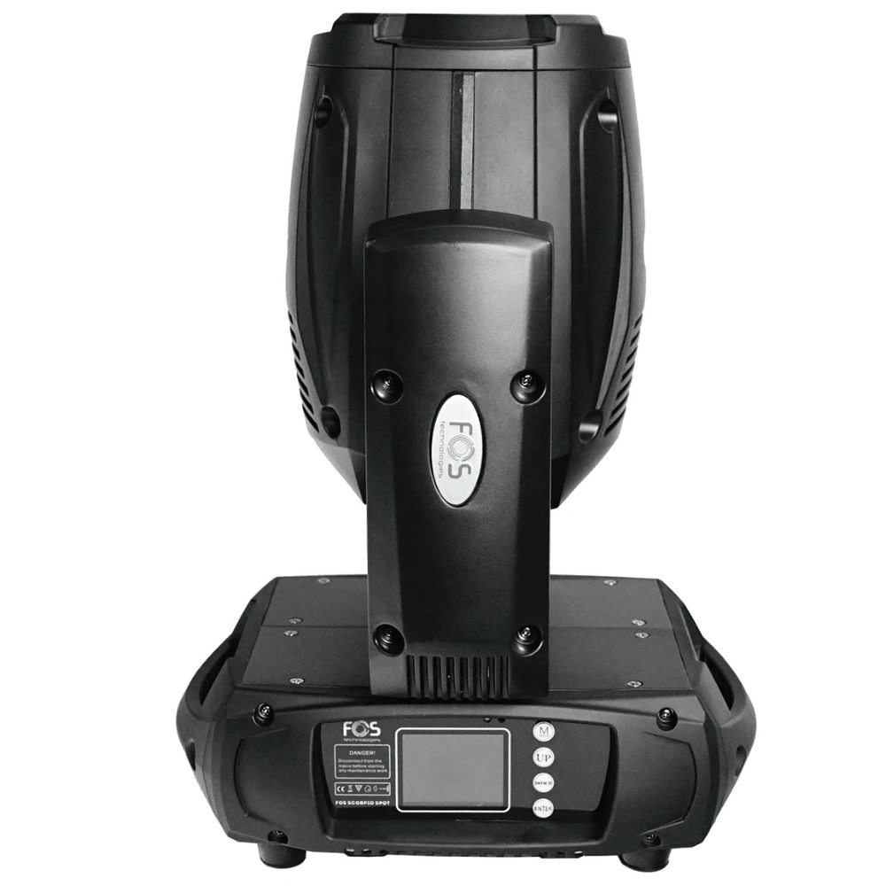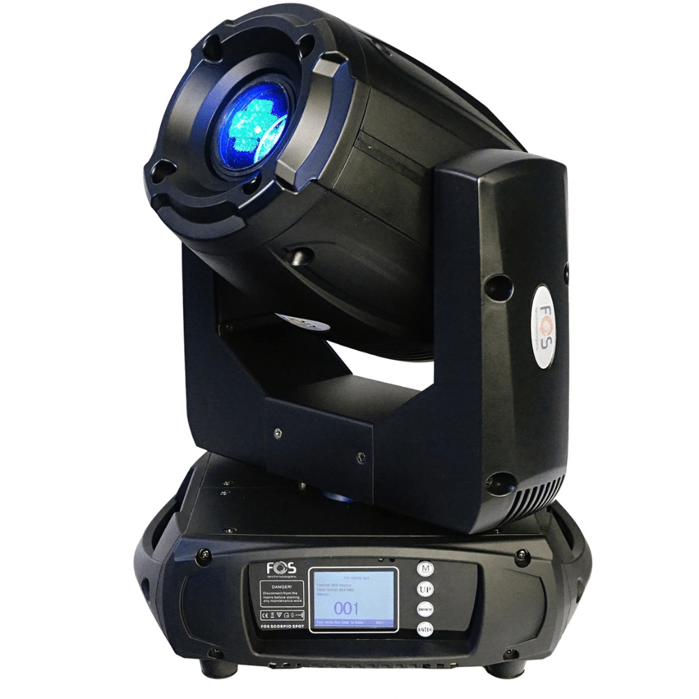 FOS Scorpio Spot a márka legnagyobb teljesítményű spot lámpája. 7 szín, 8 db statikus és 6 db rotációs gobo 16°-os nyitási szöggel. A kis tömegének és masszív burkolatának köszönhetően mobil felhasználásra is alkalmas.