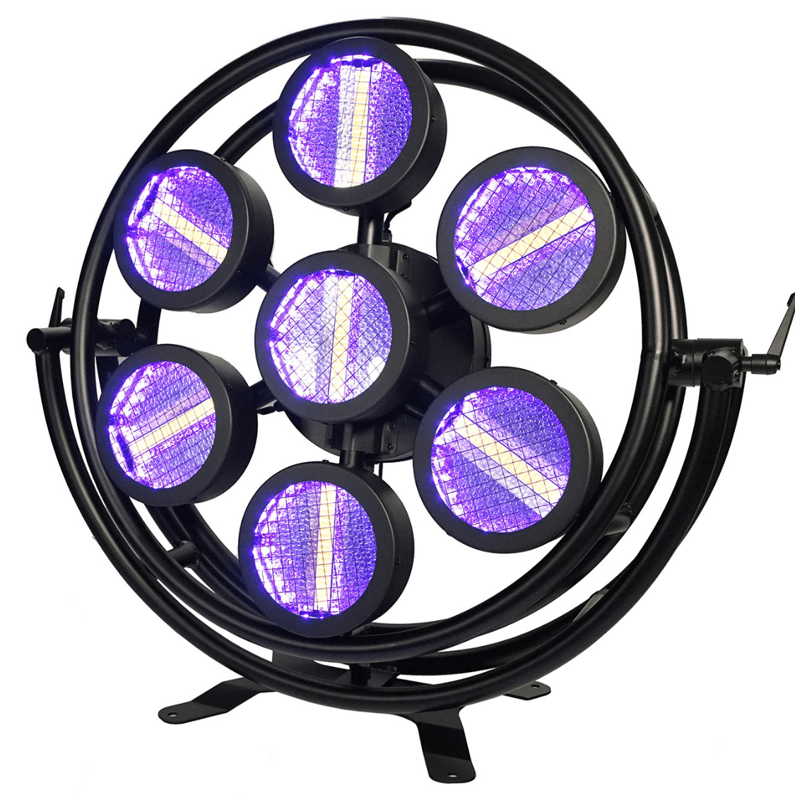 A FOS Vintage 7 Ultra visszarepít minket az időben. A 7 db 60W-os 2200K meleg fehér led, valamint a 168 db, egyenként 0.5W RGB led tökéletes összképet alkot. 9, 10, 28 és 38 csatornás módban, talajon és függesztve egyaránt használható.