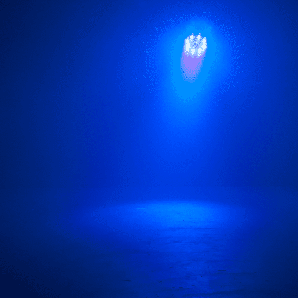 UV világítás: Nyolc darab 3W-os UV LED új dimenziót ad a fényshow-hoz, különösen hatásos fluoreszkáló anyagokkal.
