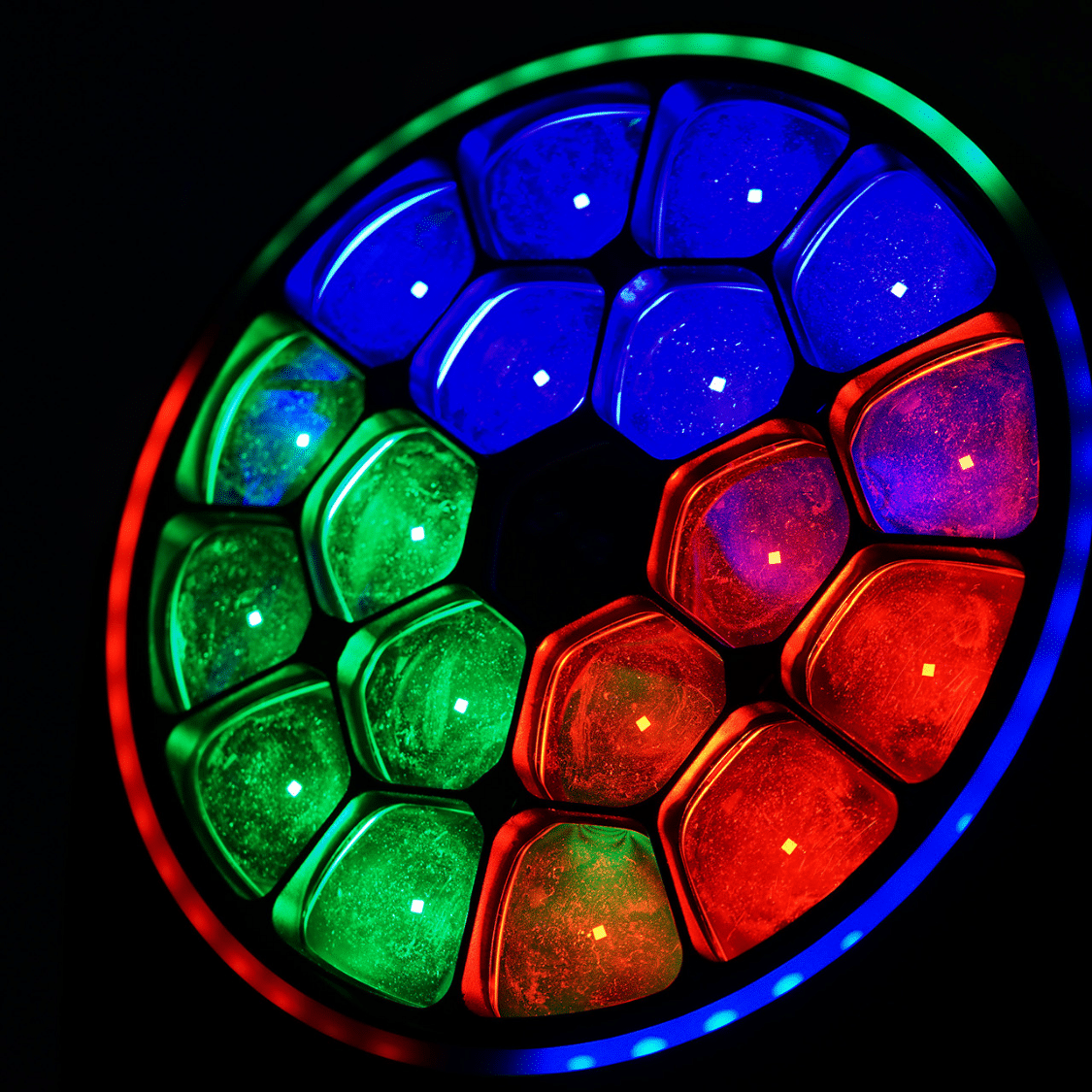 1 199 990 FtA Focus Flex L19 egy nagy teljesítményű RGBL LED-es mozgófejes lámpa motoros zoommal, pixel effektekkel, CMY színkeveréssel és precíz DMX vezérléssel.